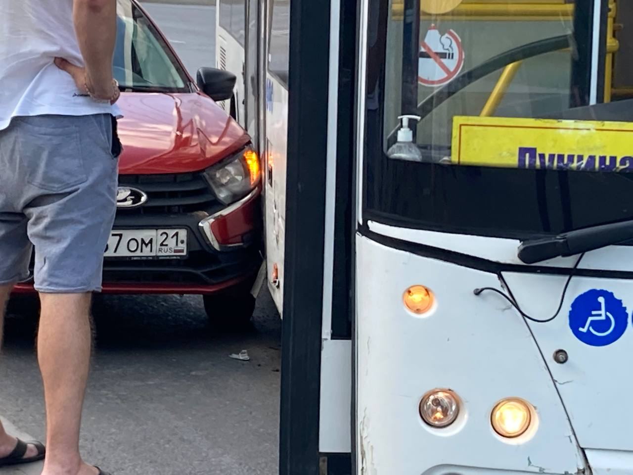 На Эгерском бульваре притерлась Lada и автобус 52 маршрута. Как так у них получилось? Фото: Олег Елькин