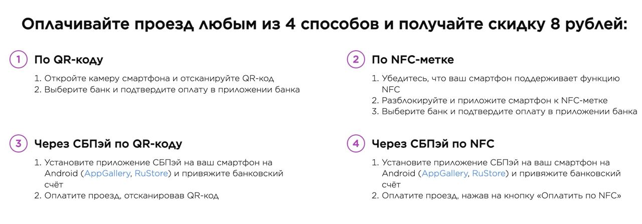 с 10 июня 2024 по 30 сентября 2024 скидка 8 рублей за проезд при оплате с помощью СБП <https://vamprivet.ru/promo/transport/oplata-poezdok-s-vygodoy-v-gorode-cheboksary/ P.S. Уточ…